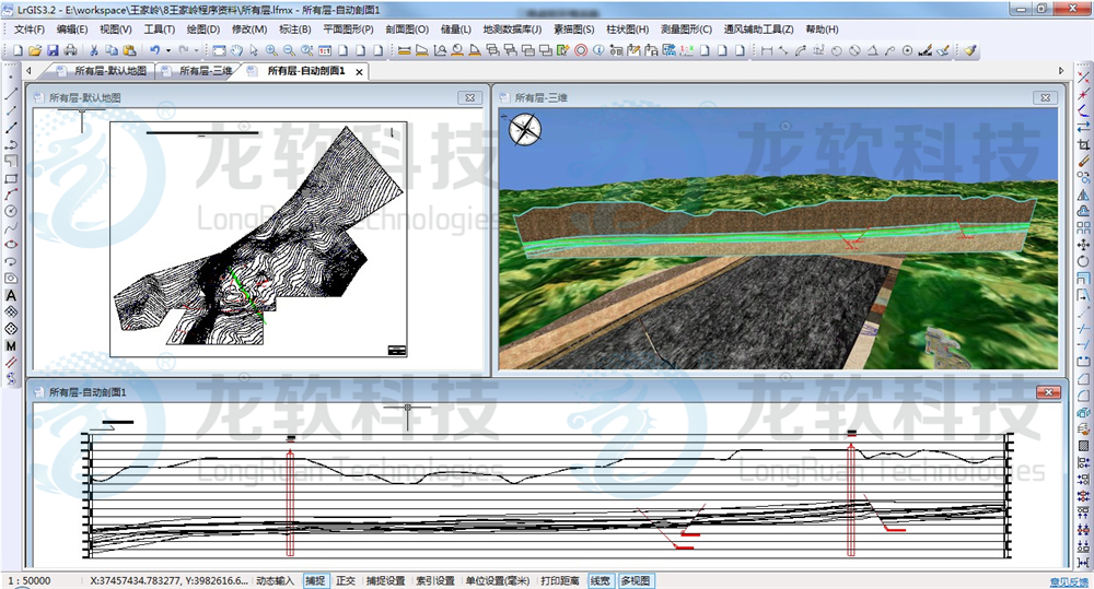 LongRuan TGIS(x,y,t)二維空間+時間管理平臺(簡稱LongRuan TGIS平臺)是龍軟科技集近20年空間信息服務和研發經驗,奉獻給用戶的一套具有完全自主知識產權的時空一體化GIS產品。平臺融合了云計算、邊緣計算、大數據、分布式協同、人工智能、跨平臺、中臺等技術,具有強大的可視化、空間數據管理、地質建模、空間分析、時態版本、歷史回溯、空間信息集成、發布與共享等能力,提供了完善的空間數據采集、存儲、管理、分析、處理、制圖與可視化功能,是智能化煤礦建設的重要技術中臺,可基于“一張圖”模式實現各類業務數據與基礎地理數據的疊加集成、匯交更新,為智能地質保障系統提供地質數據管理、高精度地質建模、地質云服務等支撐,支持“桌面、服務、Web、移動、云”等主流應用場景,可應用于智慧礦山、智慧應急、智慧安監等領域。