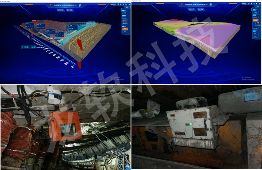 龍軟科技基于精確大地坐標及動態地質模型的智能掘進系統包括了掘進工作面超前物探、地質模型動態更新、設備精確定位及導航、無線網絡傳輸及控制、定位截割、視頻監控、數字孿生管控等關鍵技術及軟硬件產品,實現掘進工作面成套裝備的三維可視化遠程一鍵啟停控制、掘進機定位截割及協同控制等功能。