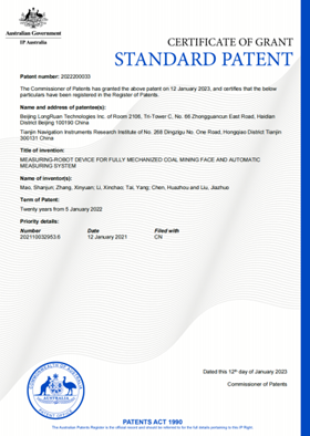 在礦山國產工業軟件領域,龍軟科技作為行業龍頭企業,一直秉承“自主可控、原創開發”的發展理念,瞄準行業痛點、潛心研究攻關,勇攀智能礦山建設體系化技術高峰,以多年技術沉淀及行業積累為基礎,先后布局了時空智能管控平臺、智能綜采綜掘、透明化礦山、新型開采方式及裝備等系列專利組。同時,龍軟科技以“持續引領行業前沿技術,立足中國,服務全球礦山智能化建設”為宗旨,積極開展國際化知識產權布局,持續研發通用、先進、實用的智能礦山數智解決方案。近日,圍繞智能化礦山建設必備的智能化工作面測量裝備、智能化管控平臺,公司“一種綜采工作面測量機器人裝置和自動測量系統”、“基于地質測量保障系統的礦山智能化管控平臺建設方法”兩項專利在國內發明專利授權基礎上,分別獲得了美國、加拿大、澳大利亞、俄羅斯等國家的國際發明專利授權,在智能礦山國際業務領域構筑了專利壁壘,為龍軟科技走出國門、服務全球打下了堅實基礎。