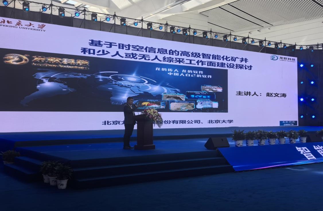 在展會期間,龍軟科技的技術人員還積極參與了技術交流研討活動,與來自全國各地的專家學者和企業家進行了深入的探討和交流。龍軟(山西)智控副總經理趙文濤做了題為“基于時空信息的高級智能化礦井和少人或無人綜采工作面建設探討”的專題報告。
