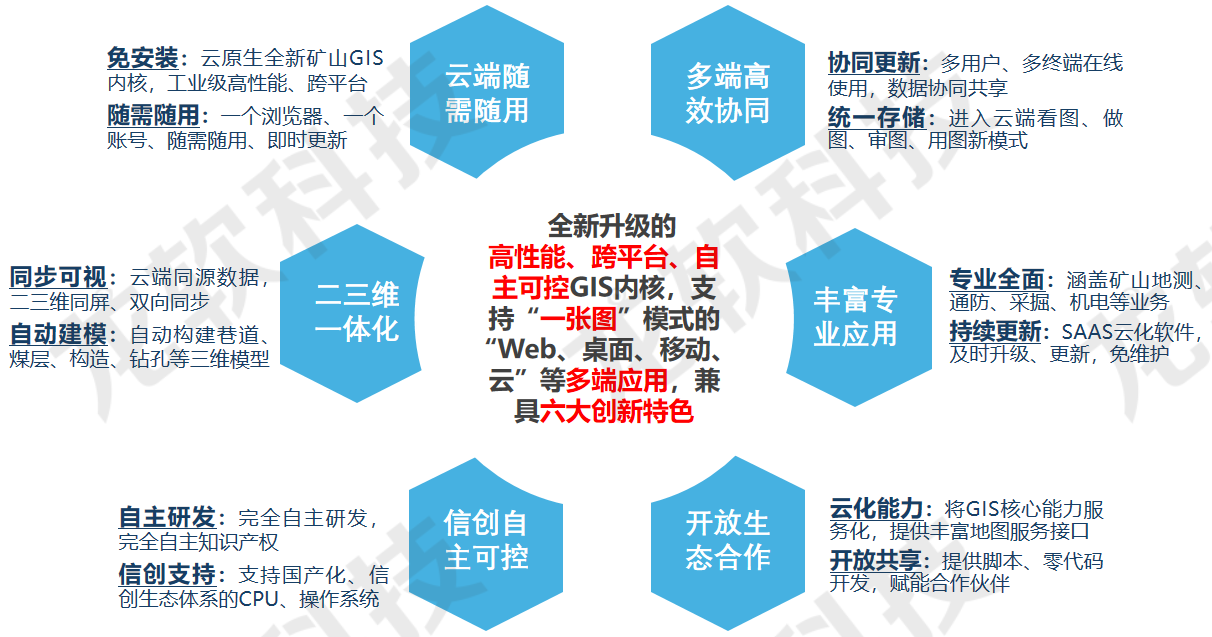 免安裝隨需隨用:云原生全新礦山 GIS 內核,提供工業級高性能 Web 渲染 引擎,支持大體量、高精度、多端一致的流暢體驗,私有云公有云方式免安裝、便捷登錄、 隨需隨用、即時更新。