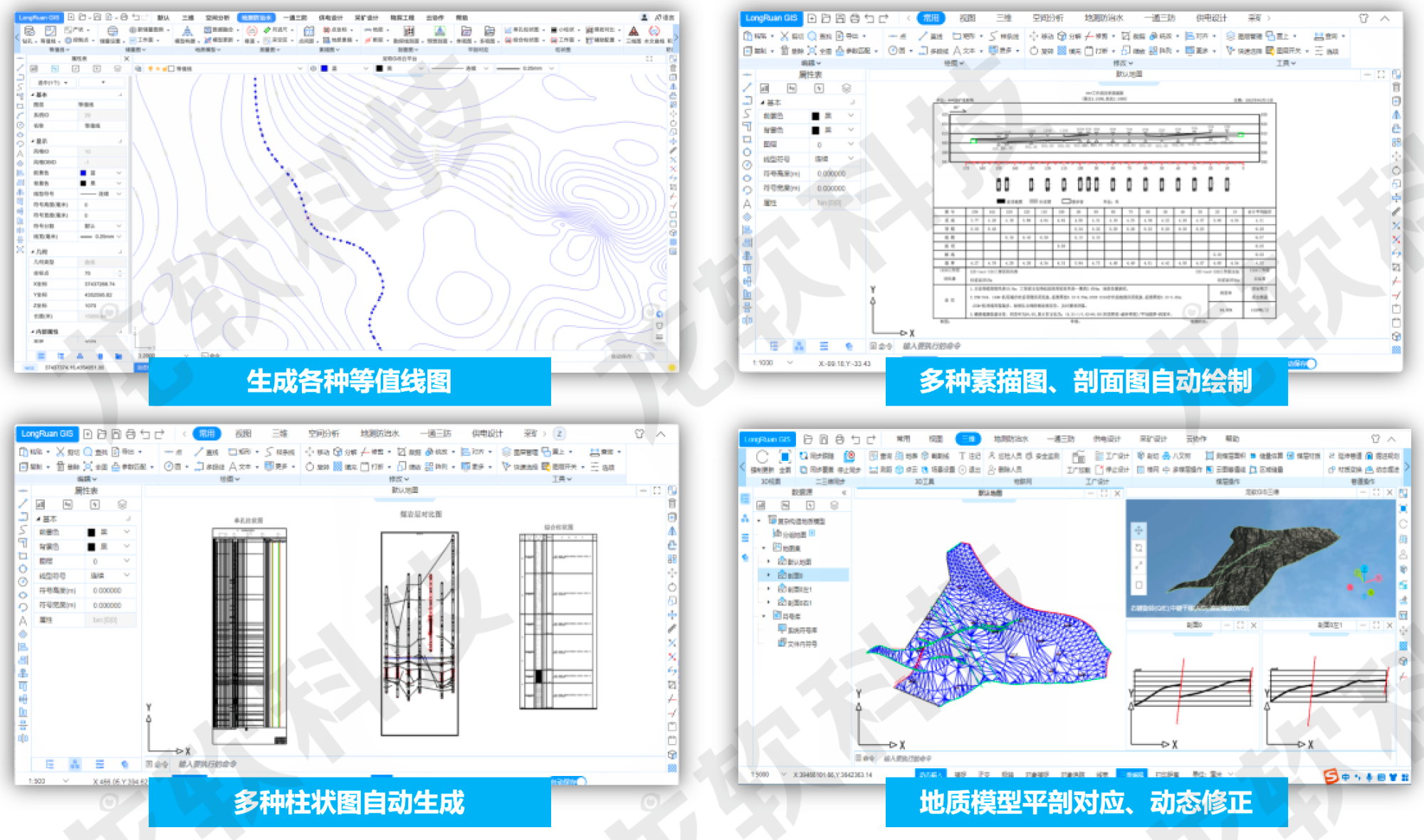 基于云服務架構的龍軟云GIS(云地理信息系統,簡稱“龍軟智圖v1.0”)龍軟科技從底層開發的、具有完全自主知識產權的新一代專業地理信息系統。該產品基于云服務、大數據、分布式協同、時空智能等技術,針對礦山地測防治水、透明化地測保障、一通三防、采礦設計和供電設計等多維專題圖形處理實際需求,采用面向服務的架構體系開發,具有實用、易用、先進、可靠、可擴展等特點。