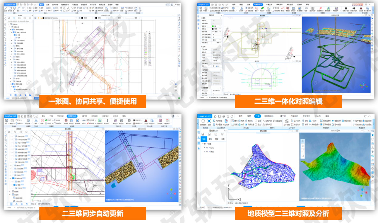 豐富專業應用:提供強大的GIS空間數據管理、地質建模、空間分析、服務發布與共享等能力,功能應用涵蓋礦山地質測量、一通三防、機電設計、采礦設計等業務。