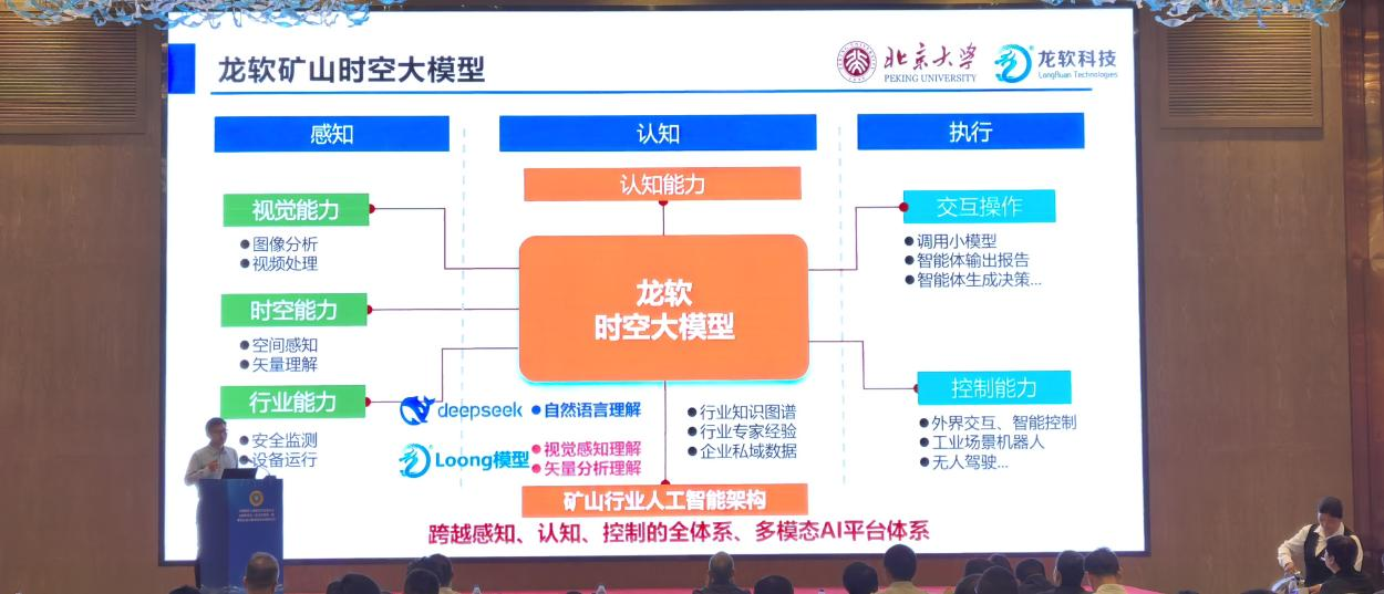 會議期間,中國煤炭工業(yè)協(xié)會信息化分會發(fā)布了“煤炭行業(yè)大模型技術(shù)應(yīng)用成果”,“龍軟時空大模型”作為發(fā)布的階段性重要應(yīng)用成果之一,得到了與會專家和代表的高度關(guān)注。公司人工時空智能研究院院長張鵬鵬應(yīng)邀為大會做“基于時空大模型的礦山智能決策關(guān)鍵技術(shù)與應(yīng)用”專題報告,向與會代表詳細(xì)介紹了龍軟時空大模型的技術(shù)體系及典型應(yīng)用場景。