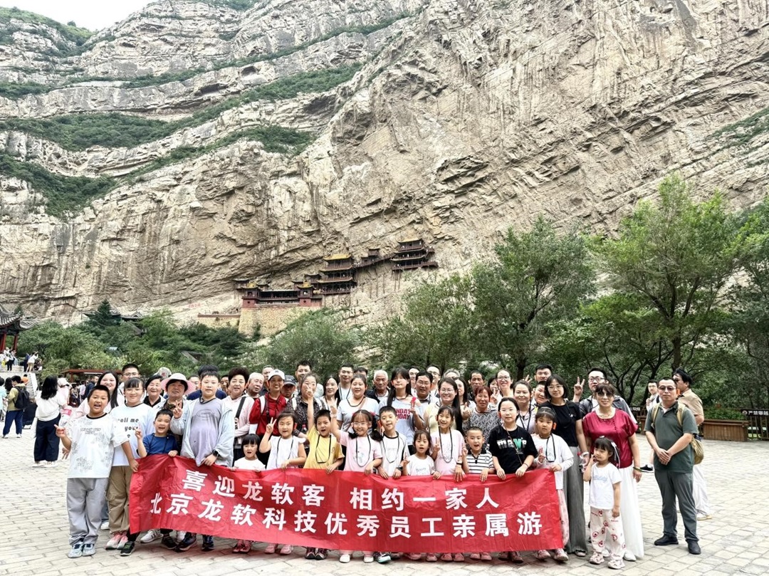為表彰2024年度26位杰出員工,傳承“家文化”企業精神,7月23日至27日,北京龍軟科技股份有限公司隆重舉辦第十五屆“喜迎龍軟客 相約一家人”優秀員工親屬感恩之旅。來自北京、徐州、成都等全國9大辦公區的69名員工及家屬齊聚山西大同,在千年古跡與山水人文中深化情感紐帶,感受公司“以奮斗者為本”的深厚情懷。