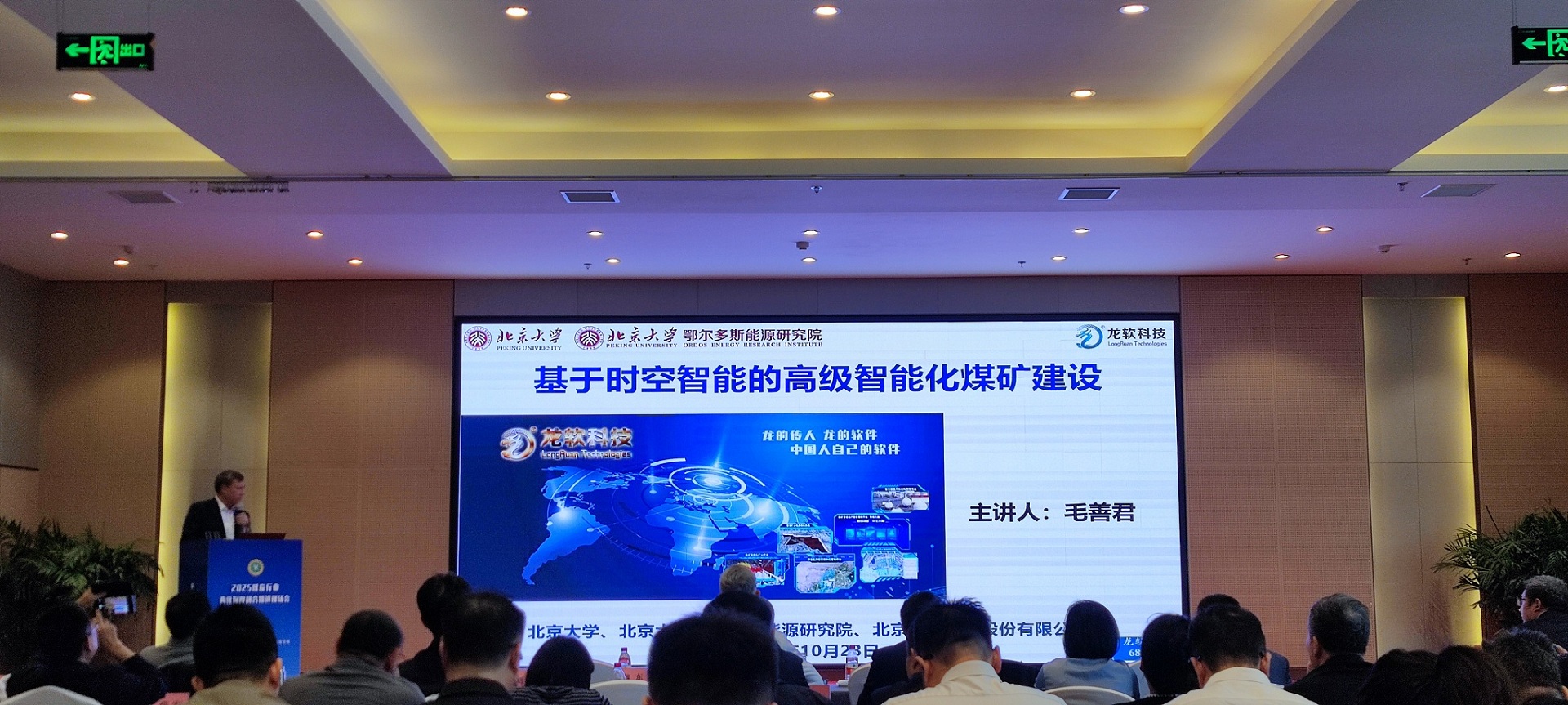 龍軟科技應邀參加此次會議,北京大學教授、北京龍軟科技股份有限公司董事長、北京大學鄂爾多斯能源研究院首席科學家毛善君在大會中做《基于時空智能的高級智能化煤礦建設》專題報告,毛善君教授詳細介紹了龍軟科技-北京大學團隊在智能化煤礦建設方面的創新成果和實踐經驗,提出了高級智能化礦井建設的6626工程,重點匯報了工程領域首個時空大模型--龍軟時空大模型1.0Loong Model 1.0的內涵與實際應用,并分享了團隊在煤礦裝備智能化、地測透明化、分析在線化、智能系統化、控制協同化、生產綠色化等方面取得的顯著成果。其中基于透明化地測保障系統的智能化礦山管控平臺及其應用系統,相關核心技術已獲我國和美國、加拿大、澳大利亞、俄羅斯發明專利。
