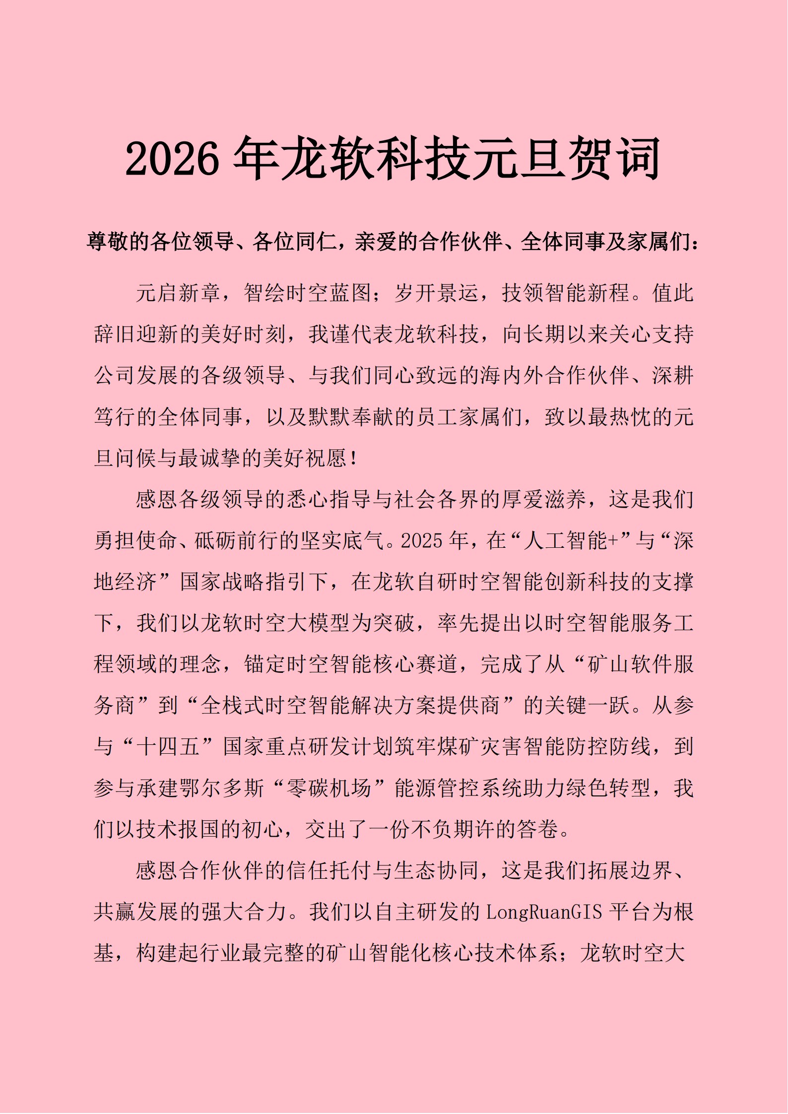 公司聯合北京大學鄂爾多斯能源研究院、中國大唐集團能源投資有限責任公司共同研發推出“龍軟時空大模型1.0”,該模型突破傳統大語言模型三大瓶頸:(1)實現“矢量+柵格”多模態時空數據的智能處理,填補了現有AI在工程矢量圖形處理領域的技術空白,讓AI真正“看懂工程圖形”;(2)深度融合礦山各專業場景的私域數據,構建起“礦博士、智能安監員、全能技術員、礦長助手、智能運維工程師”五大角色化應用,覆蓋從設計、安全、生產到運維的全流程;(3)構建“時空感知-精準決策-高效執行”的礦山人工智能應用新范式,在大唐能投、國家能源集團、永煤集團、晉能控股等標桿項目中,使安全生產數據處理效率、決策支持實用性大幅提升。中國科學院金之鈞院士評價其“是政產學研用深度融合的典范,為工程智能化提供了強大智能平臺”。