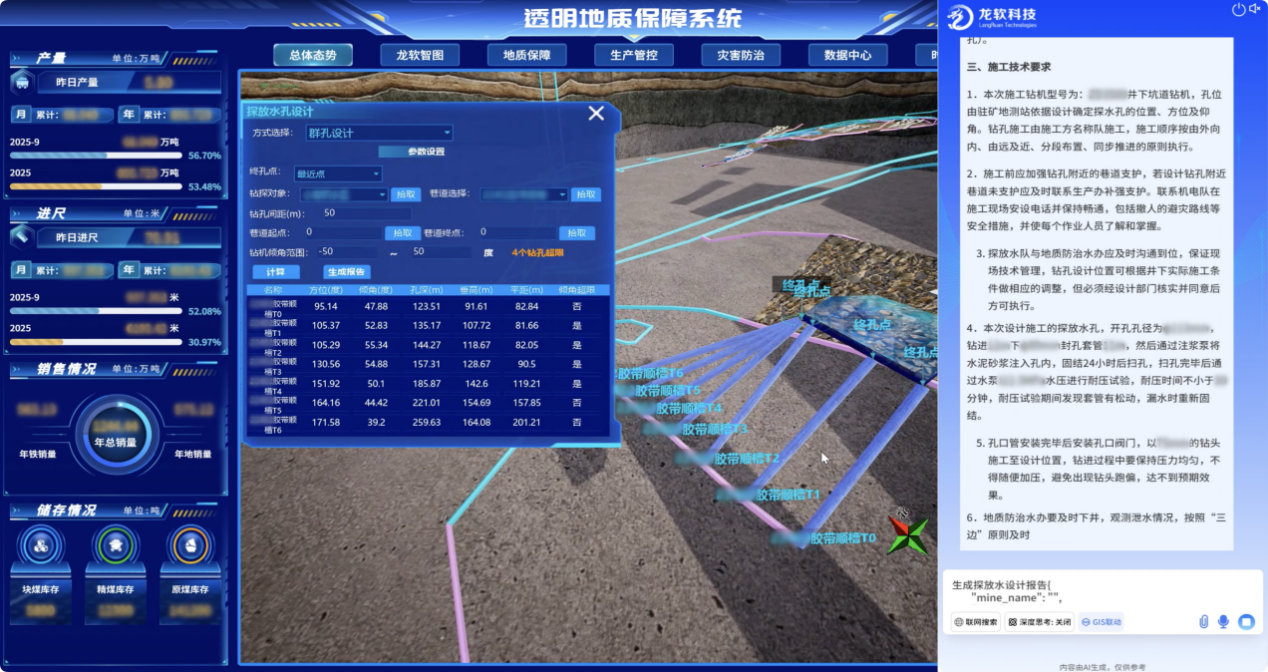 該平臺(tái)實(shí)現(xiàn)了數(shù)據(jù)、圖形和模型的一體化處理,支持煤礦地質(zhì)、測(cè)量、通防、機(jī)電、生產(chǎn)等專業(yè)自動(dòng)成圖、同步建模和時(shí)空信息的高度共享和動(dòng)態(tài)處理,有效破解了長(zhǎng)期困擾行業(yè)的包括地質(zhì)建模與更新在內(nèi)的“卡脖子”關(guān)鍵技術(shù)難題。系統(tǒng)兼具的技術(shù)先進(jìn)性與場(chǎng)景實(shí)用性,創(chuàng)新實(shí)現(xiàn)了時(shí)空信息云服務(wù),在實(shí)現(xiàn)時(shí)空信息云服務(wù)的同時(shí),深度融合了龍軟科技多年積累的煤礦GIS專業(yè)化應(yīng)用成果,不僅全面推動(dòng)了礦山安全生產(chǎn)業(yè)務(wù)的數(shù)字化轉(zhuǎn)型,更以高精度三維模型為支撐,為煤礦智能采掘、智能通風(fēng)和災(zāi)害預(yù)警提供了堅(jiān)實(shí)的技術(shù)底座與可視化決策平臺(tái)。